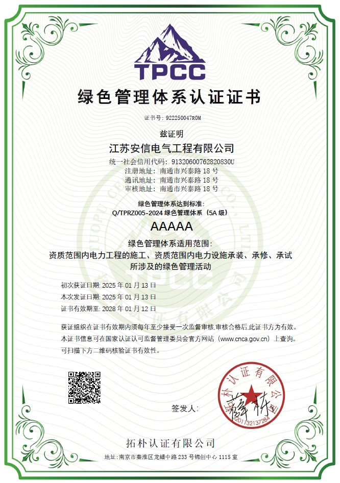 在創業之初,公司就堅持高起點的戰略思路,廣納賢才,集聚行業精英,創新發展,做優企業品牌?,F已取得:承裝二級、承修二級、承試二級,電力工程施工總承包二級,輸變電工程專業承包二級,建筑工程施工總承包二級,建筑機電安裝專業承包二級,地基基礎專業承包二級資質證書,并通過了質量、環境、職業健康和安全管理體系認證,確保各項工作有序管控。